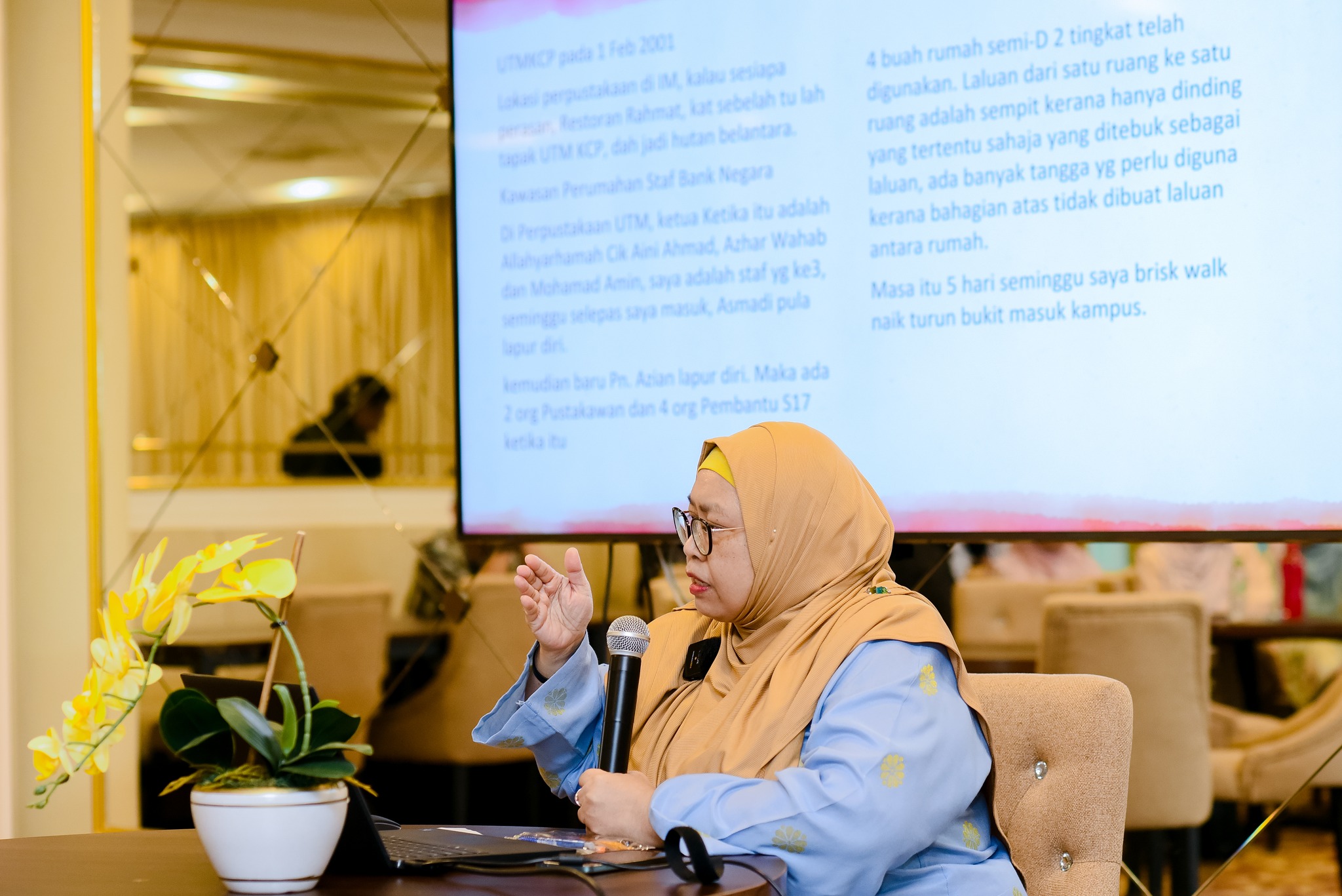Beliau turut berkongsi kisah bagaimana berlakunya transisi dari Perpustakaan UTM KCP ke Knowledge Management Centre atau lebih dikenali sebagai KMC ketika itu, seterusnya era penubuhan perpustakaan UMPSA.